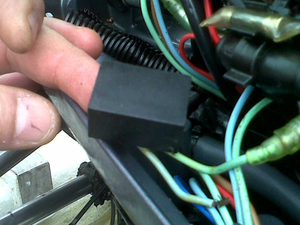 Il en sort un fils vert, un bleu allant vers les relais et un noir relié a la masse sur la platine de maintien des relais trim et démarreur.