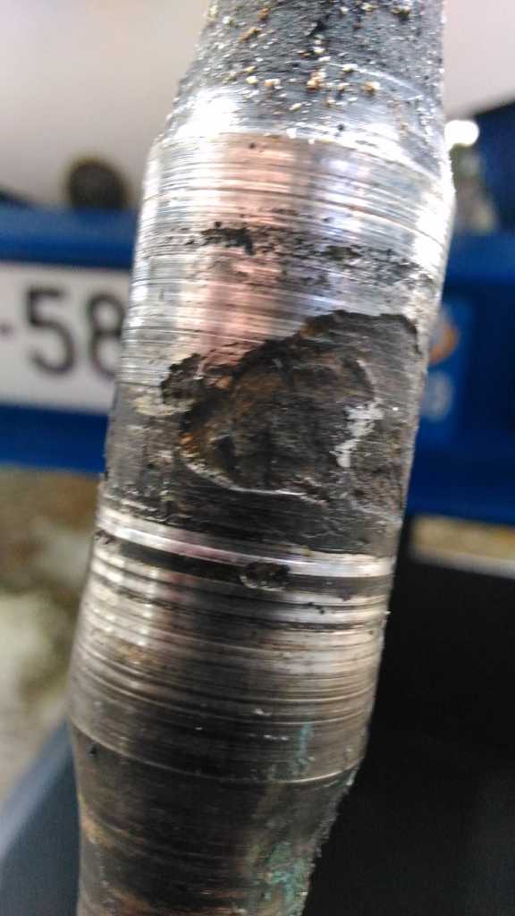 Par contre, au niveau du palier, dont il ne reste rien, l'arbre est marqué par une corrosion profonde;( quelques dizaines de Mm ).