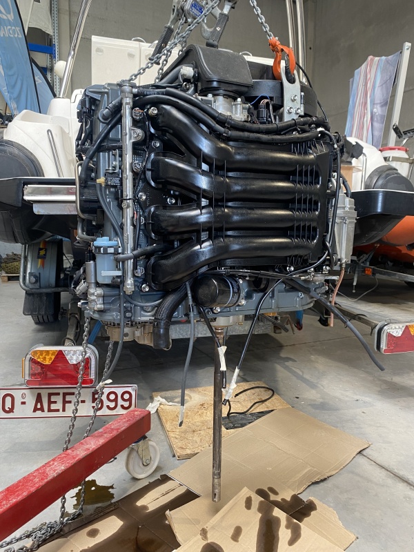 Le bateau retourne chez le mécano qui va disquer l'embase et l'arbre pour retirer la tête motrice....