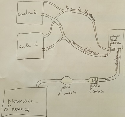 là il démarre mais cale au bout de 2 à 7/8 secondes max... le propriétaire pense à un problème d'arrivée d'essence, il avait bricolé quelque chose apparemment avec une pompe de gavage et tripatouillé le starter mais ça marche toujours pas.