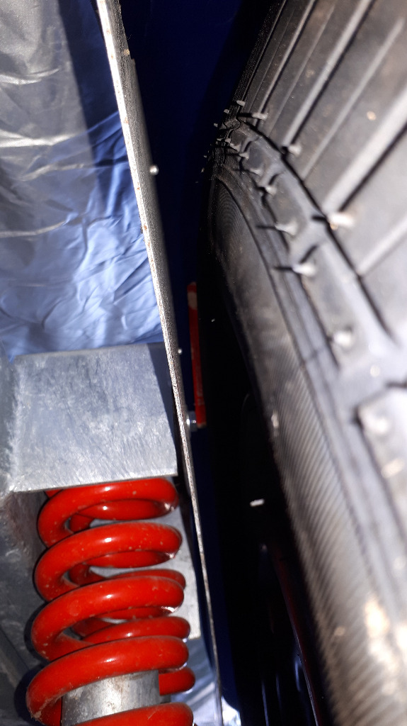 Non c'est pas moi qui mesure le déport mais qu'importe. Dans une telle situation je démonte ressorts et amortisseur et je contrôle le débattement complet de la roue montée avec son pneu et je fais des photos.