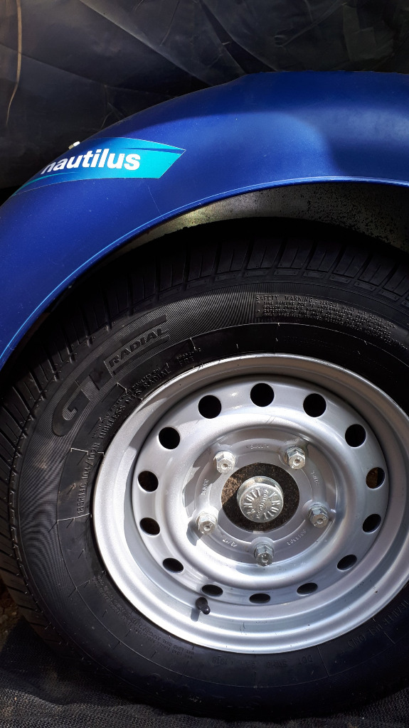 Les jantes de cette remorque ne sont peut-être pas les bonnes - déport trop élevé -,et Nautilus ne le sait pas car ils reçoivent les jantes avec le pneu monté en Chine. La solution est alors simple, ils fournissent un jeu de jantes à la bonne cote.