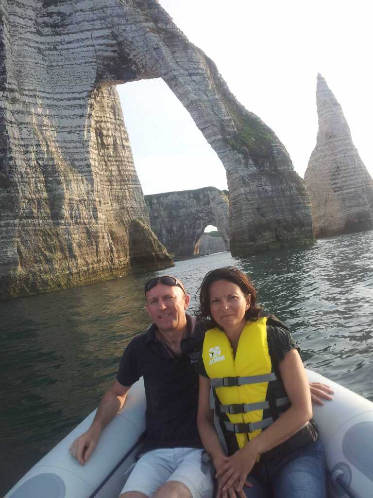 Toi qui est né à Etretat, photo ci jointe (Mme et moi sur notre sr),