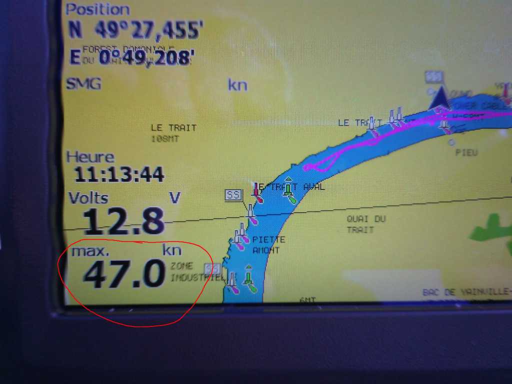 Entouré en rouge la vitesse max une heure avant et la charge ::M-) ::M-) ::M-) ::M-) ::M-) en bleu la vitesse instantanée qui reste a 0kn