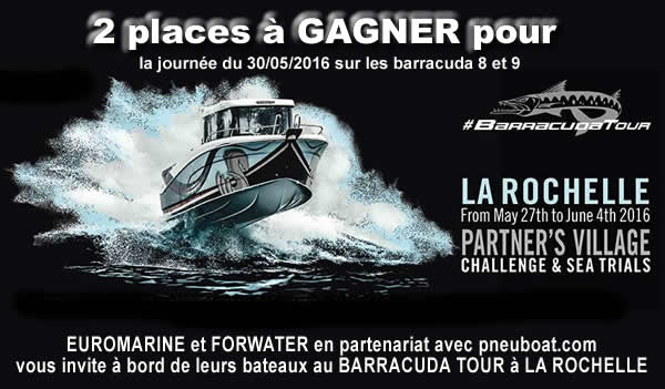 EUROMARINE ET FORWATER EN PARTENARIAT AVEC PNEUBOAT.COM VOUS INVITE* À BORD DE LEURS BATEAUX AU BARRACUDA TOUR À LA ROCHELLE.