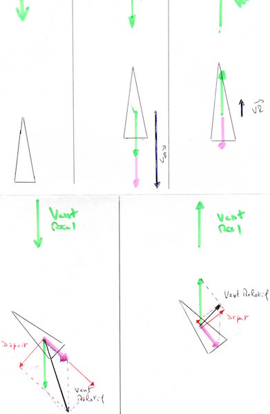 "meme si a mon gout je trouve qu'il n'insiste pas assez sur les poussées du vent du à la vitesse . C'est un phénomène que l'on rencontre en course de vitesse, au démarrage nos bateaux marsouinent à mort, car on utilise des hélices très longues, puis ils se stabilisent avec la vitesse et la portance du vent ."