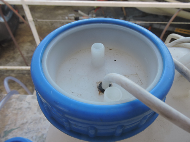Le bouchon de service avec arrivée courant, pompe , sortie et prise d'air