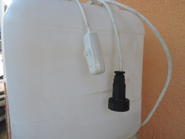 la pompe avec ses accessoires eau et 12 volts: tout cela sera immergé dans la réserve d'eau