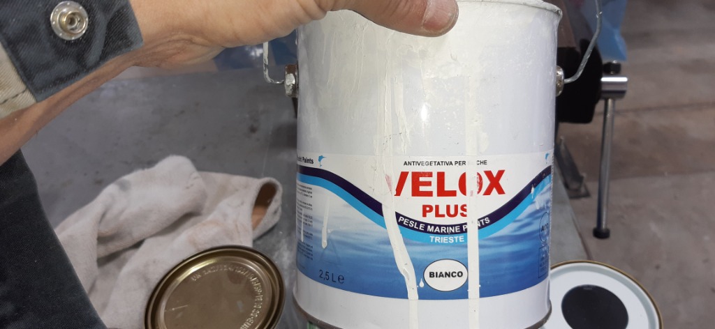 Couche antifouling Velox (X2). Une troisième couche sera nécessaire.