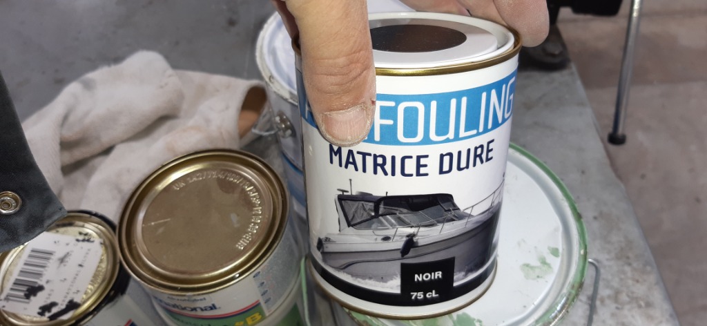 Une 2ème couche sur les flancs de coque, le tableau arrière et à l'avant de la carène à été appliquée, ce sont les endroits qui salissent le plus.