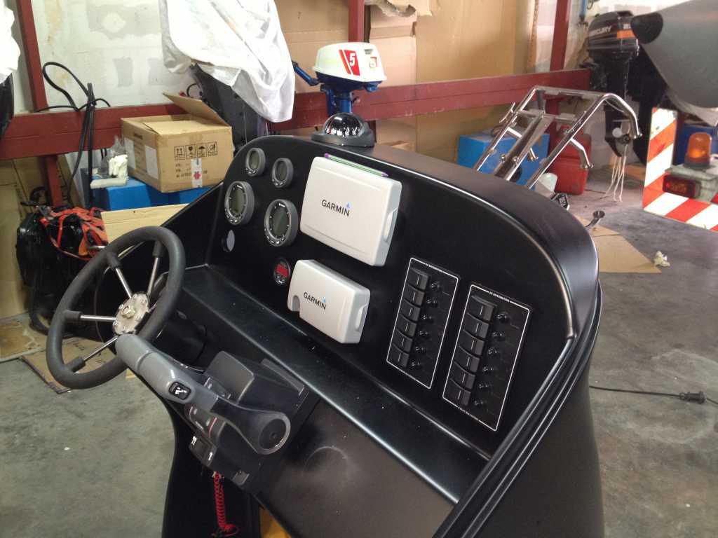 Console Ullman Aéro retaillée (- 34 cms en largeur ) bidouillée avec GPS traceur sondeur Garmin 720 S et Vhf AIS Garmin :