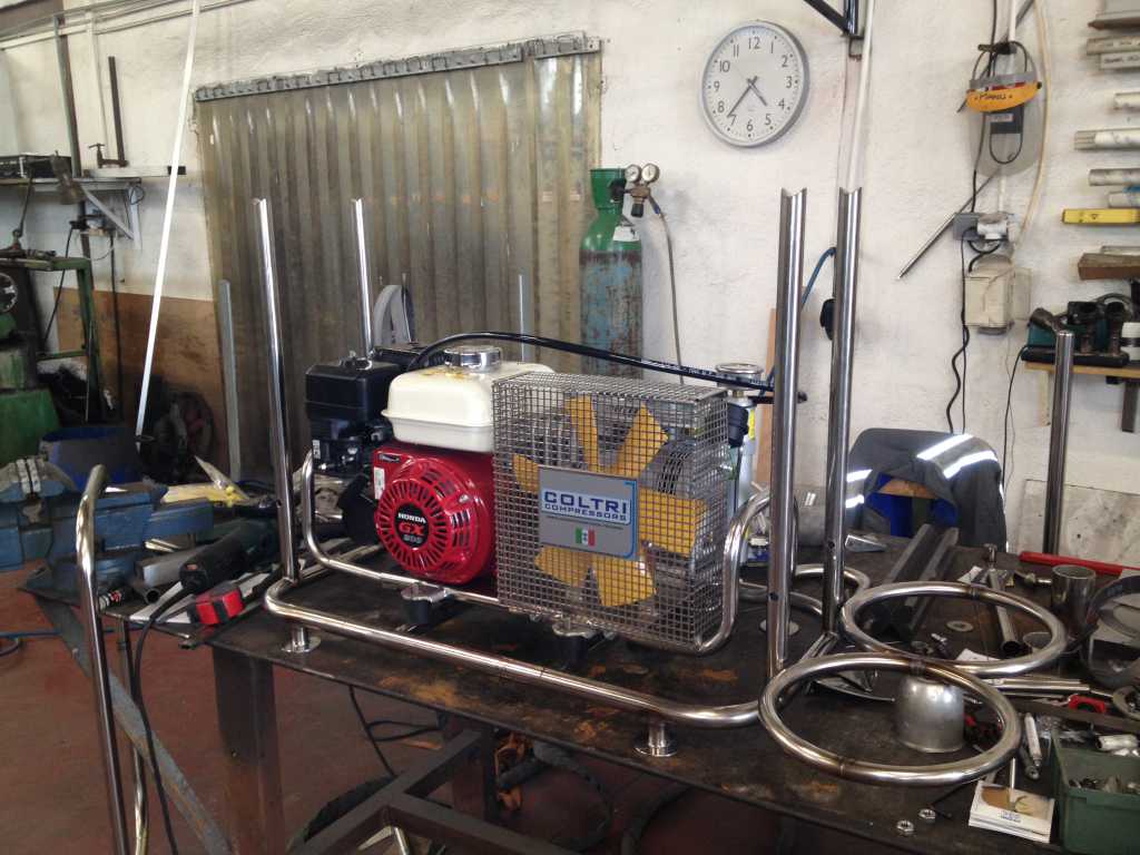 Toutes les structures inox sont "custom made ", T-Top / delphinière / bâti AR leaning post / support de compresseur / blocs :