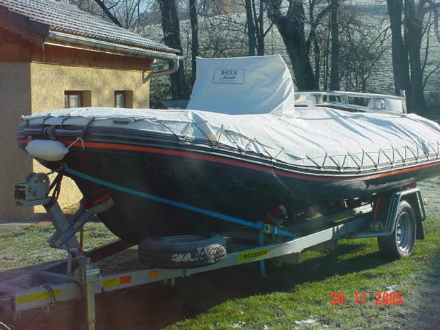 Une bonne bâche avec de nombreux points d'attache qui n'ont jamais bougé malgré certaines vitesses frisant les 120 kmh sur autoroutes étrangères !