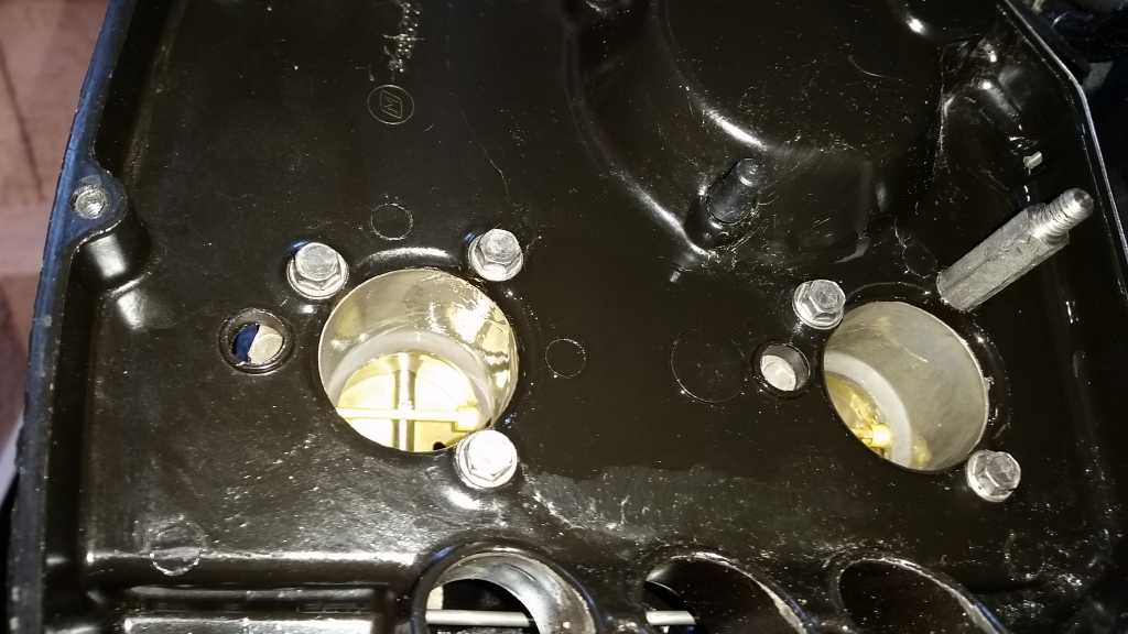 La plaque en plastique sur le dessus de chaque carbu ne doit être serré que très très modérément, si les vis sont trop serrées la plaque se déforme et occasionne des prises d'air perturbant le bon fonctionnement du moteur.