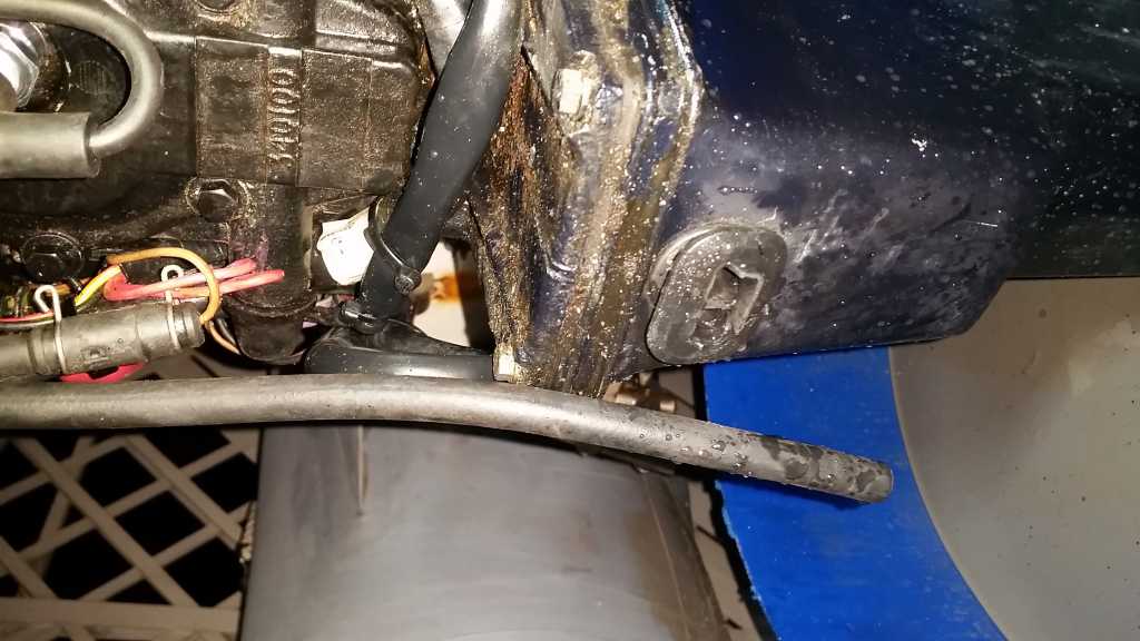 Bon batterie chargé je réessaye sans réussir à demarrer..et en m'approchant du moteur je remarque une fuite importante d'essence. Je démonté les 2 carters et découvre le petit tuyau qui va sur le dessus du carburant de dessous sectionné en partie je réparé et démarre sans réussite et toujours une fuite