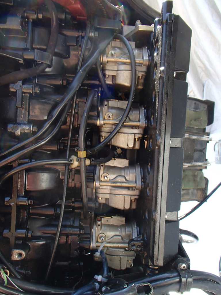 il y a les 4 " CARBURATEURS " alimentés en permanence par la pompe à essence à membrane puis une pompinette electrique qui injecte dans les " CYLINDRES" 3 et 4 .