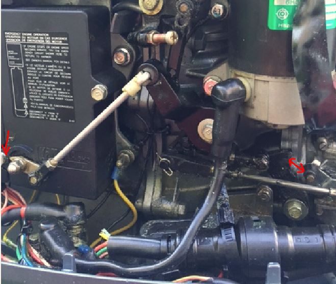 Moteur arrêté j'ai vérifié aussi en utilisant la manette des gaz (marche avant et marche arrière). Cela ramène bien la biellette du CDI au même endroit que la commande manuel.
