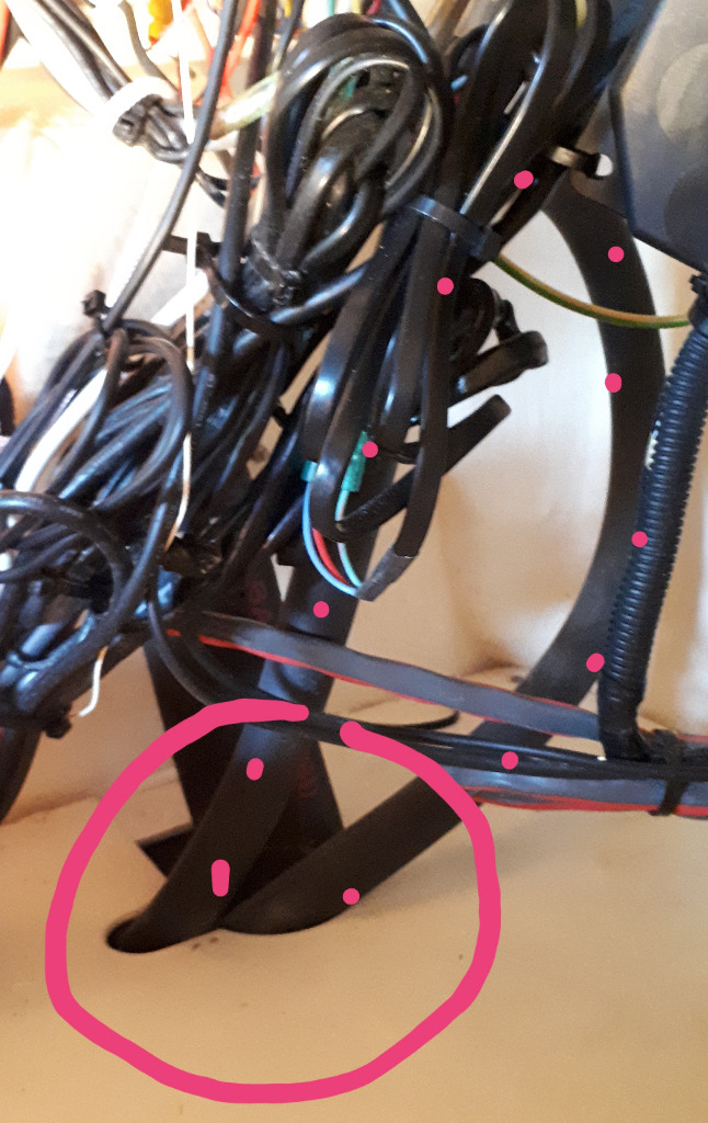 La durite d'alim est celle du fond qui frotte sur le rebord saillant du réservoir à droite, le tout sans la moindre protection !::p-