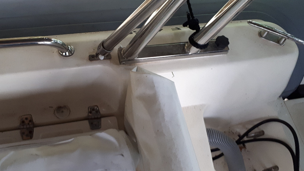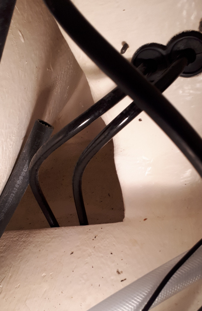 L’emplacement où sortent déjà les câblages pour le moteur, la direction hydro et la pompe de cale, me laisse très peu de place pour rajouter encore qqch