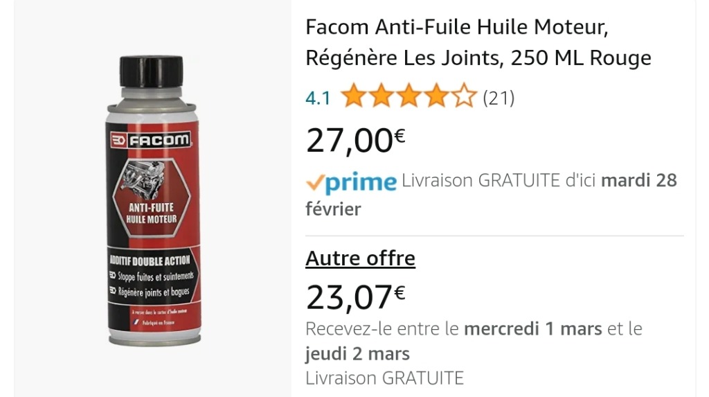 nota : le liquide anti fuite Facom pour réparation des joints spi est à essayer dès que vous avez une petite fuite sur votre stream ça coûte pas cher et ça peut être efficace, sur mon ancien bateau un mariner 60CV j'avais une fuite d'huile qui était quand même relativement importante et cela a stoppé la fuite en injectant ce produit....