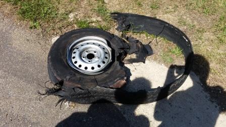 Le pneu est complètement taille en pièce mais rien d'autre n'est touché. ::K+)