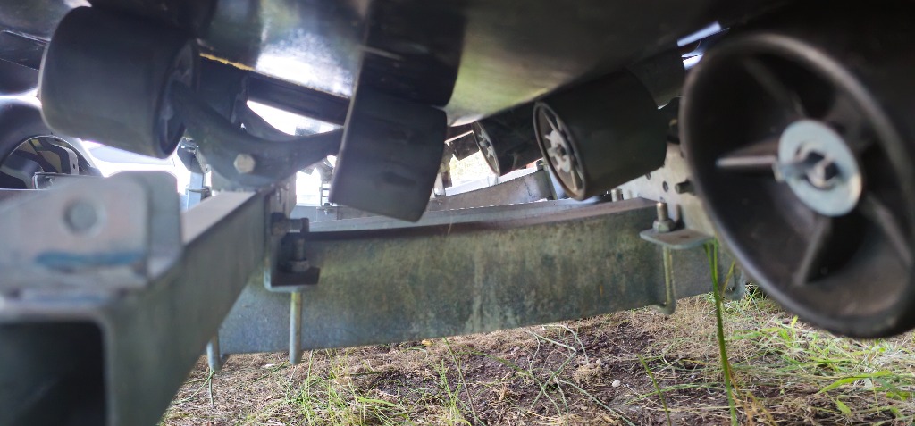 Ton problème, le le connais parfaitement et à puissance 2, car mon ancien Lomac beluga 24' open était une super coque entaillée de deux larges steps. La remorque CBS neuve vendue avec l'ensemble n'était absolument pas adaptée aux steps. Le bébé pesait 1,7 T et pour mettre à l'eau il fallait faire un freinage brutal sur le plan incliné pour décrocher le bateau et le faire glisser en force. Outre le danger de ce genre de manoeuvre agressive, les rouleaux ont été rapidement déformés au bout de trois ou quatre mises à l'eau.