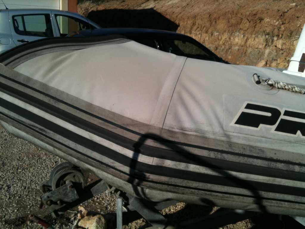 Un décollement de boudin n'est pas anodin. L'analyse d'un pro est à conseiller. Si le boudin est fixé sur des glissières comme sur le pro open 550, la réfection passe obligatoirement par un réparateur. Si c'est un décollement du à une simple défaillance de la colle qui s'est durcie au bout de 8 ans d'inutilisation du bateau, la remise en état est plus douce pour le portefeuille.