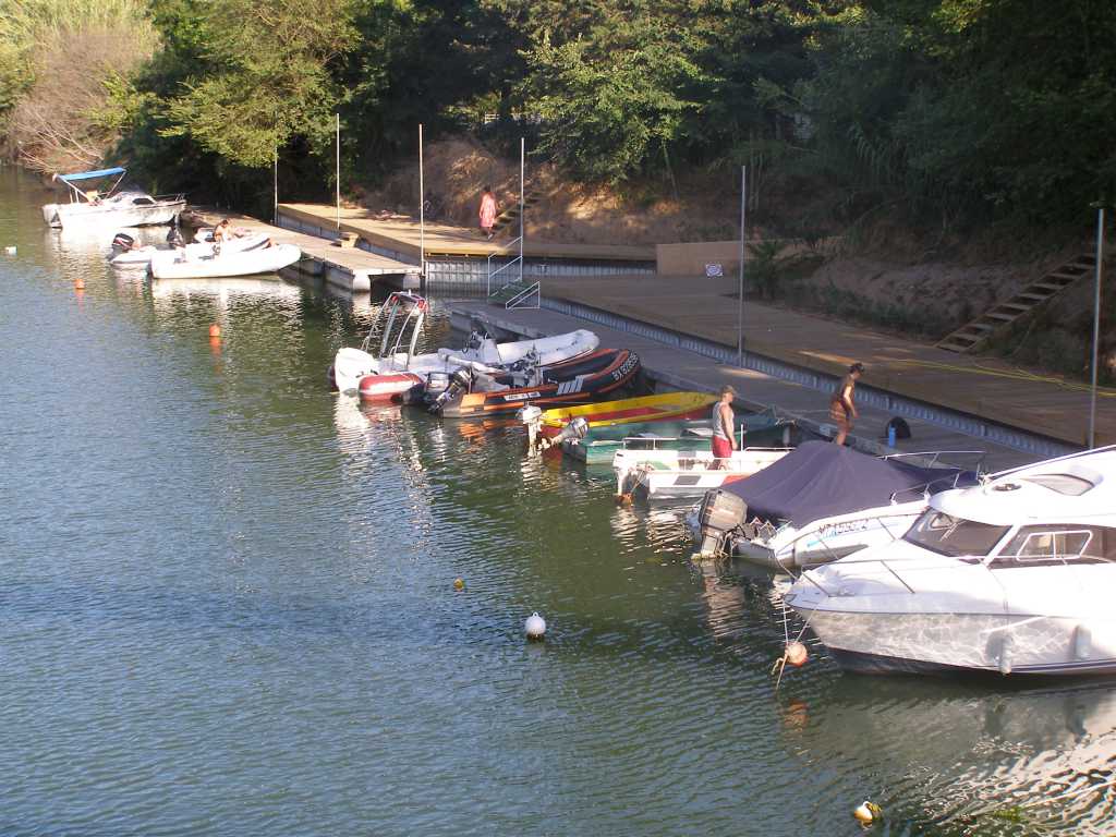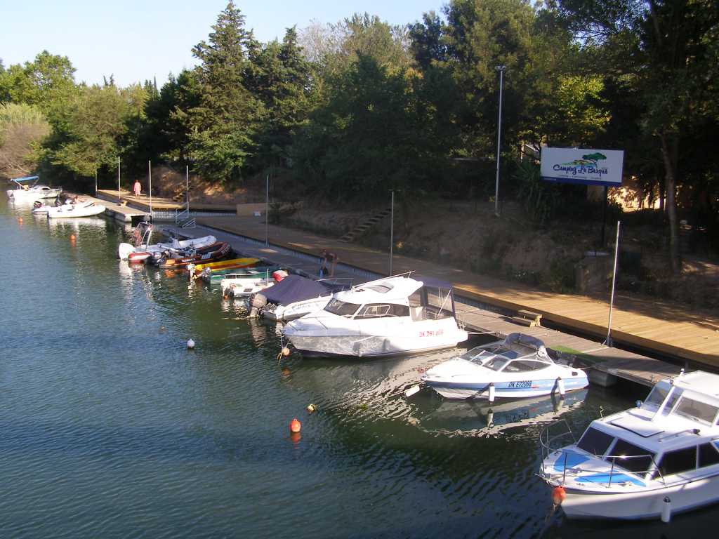 Nous venons de passer quinze jours dans un camping avec ponton privé. Il s'agit du camping "la barque" à saint Aygulf prés de Fréjus.Ce camping est situé sur l'Argens..Le petit port à été refait à neuf aprés les innondations.Il faut environ un quart d'heure depuis le camping pour rejoindre la méditérannée par l'embouchure de l'Argens.Le seul problème est le passage de l'embouchure ou il faut souvent descendre du bateau et le tirer pour éviter d'aspirer du sable et surtout éviter de passer les baigneurs inconcients au "hachoir" !!!Ci jointes les photos du ponton privé