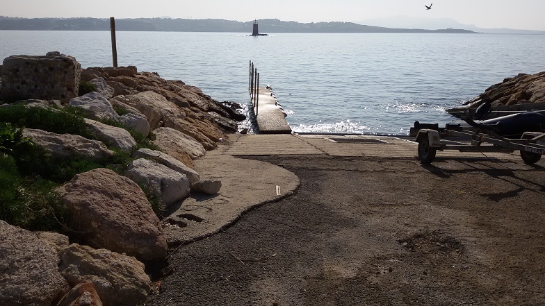 C'est une cale de pleine eau, et si la houle s'installe, elle est à éviter. Par vent de Sud Est, elle est difficile voir inpossible