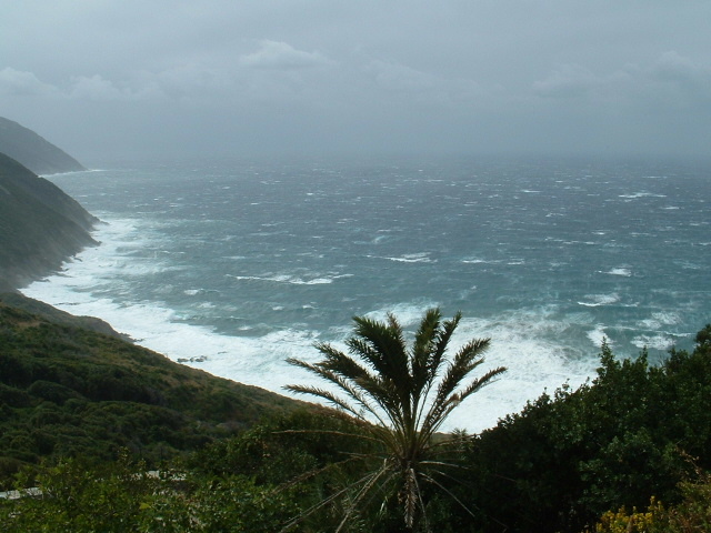 Coup de Libecciu sur Morsiglia, Le vent vient de Calvi, en face, à quelques 35 miles au 228°