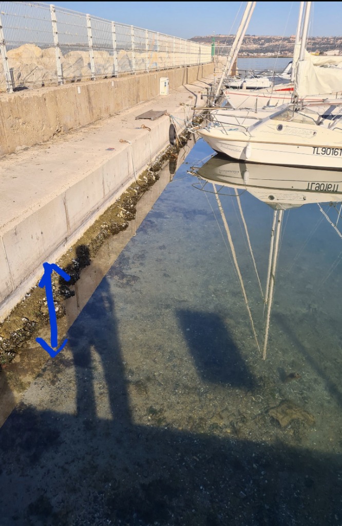 En fait l'eau à énormement baissé depuis des semaines. Au port mon bateau est 50 cm plus bas qu'à la normal....