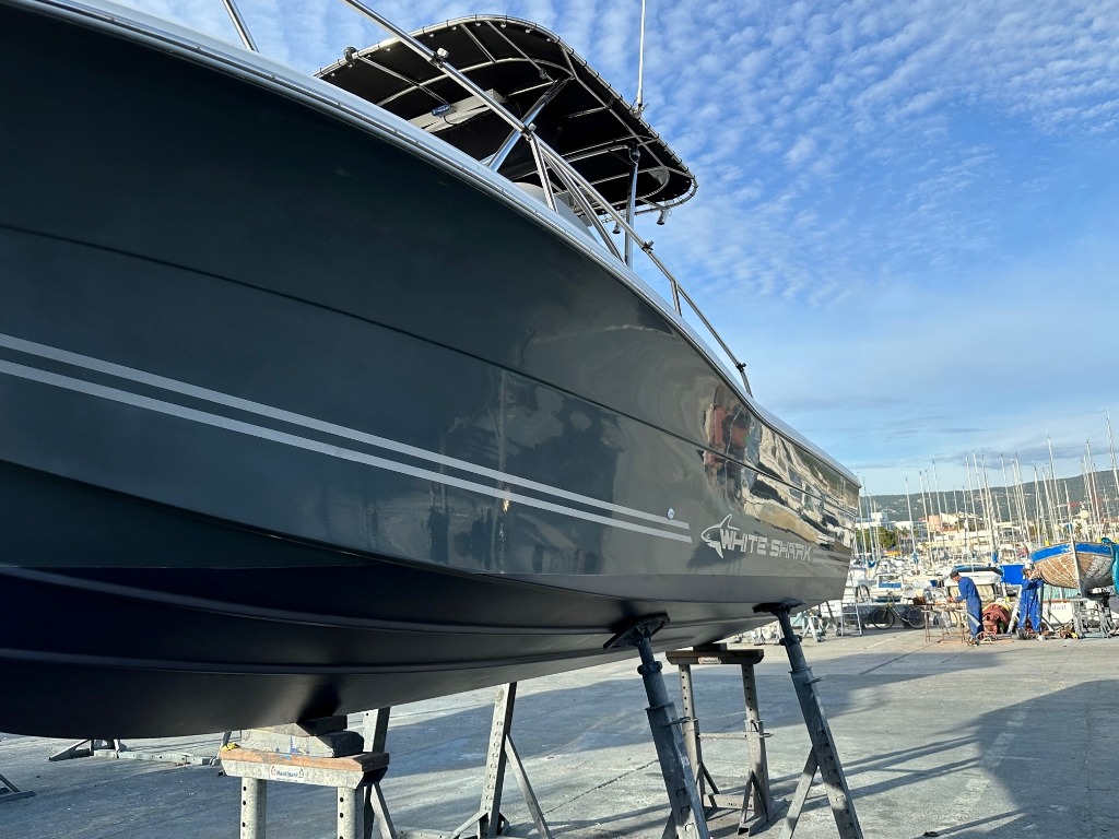 Le fiston de mon pote de Toulon bosse dans une boîte qui entretien et vend des bateaux (boston whealer) il me conseil de commencer avec Abel, abrassif après un bon premier nettoyage.