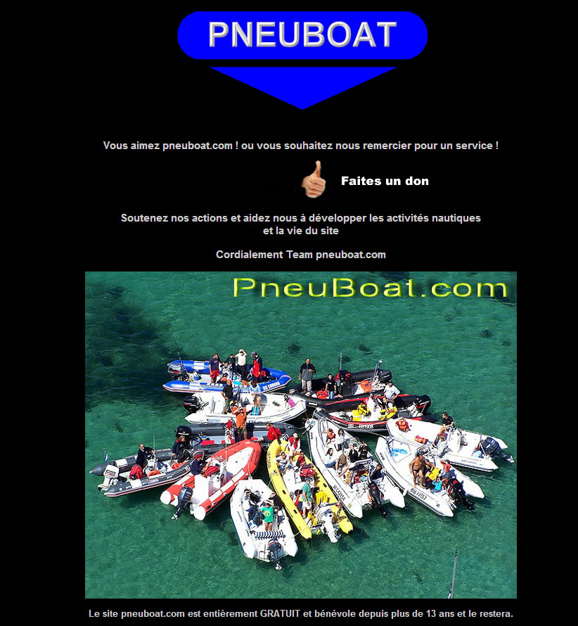 Le site pneuboat.com est entièrement GRATUIT et bénévole depuis plus de 13 ans et le restera.