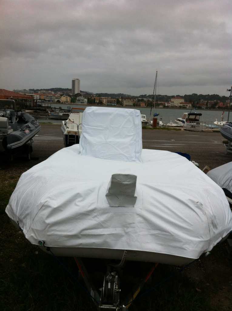beau boulot, pour conforter la réponse de Meltem j'ai opté pour un taud qui "forme chapiteau" afin que l'eau ne reste pas dessus et vienne remplir le bateau.