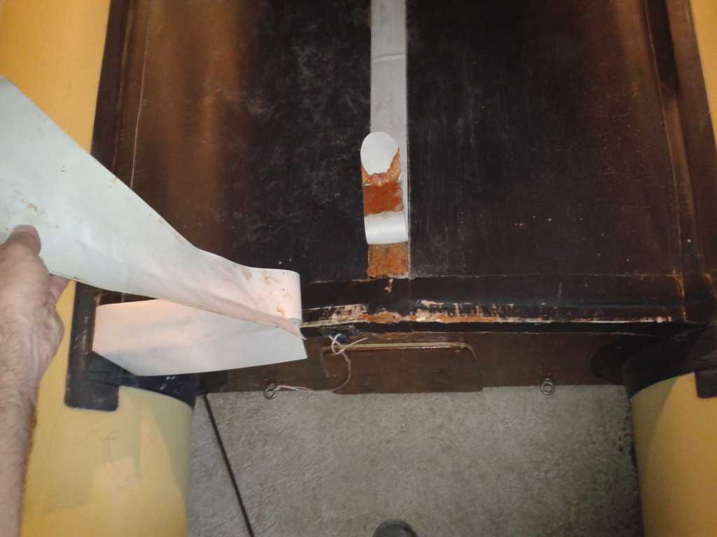 il était un peu décoller dans un coin,je tire dessus et réussis a decoller toute la partie sous le tableau (ou il y a un trou d'usure)