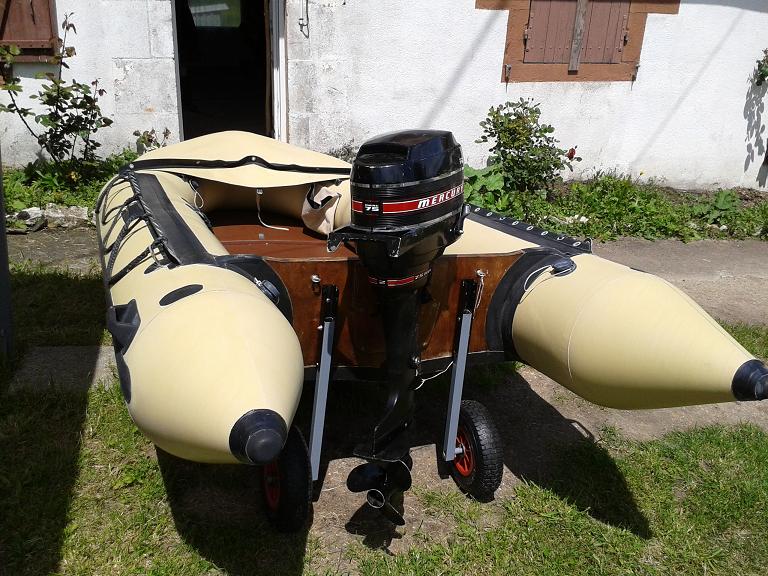 avec des roues coudées donc sous le bateau et non pas sous le moteur tu verras que tu lèveras l'avant de ton bateau beaucoup plus facilement, le moteur faisant contrepoids.