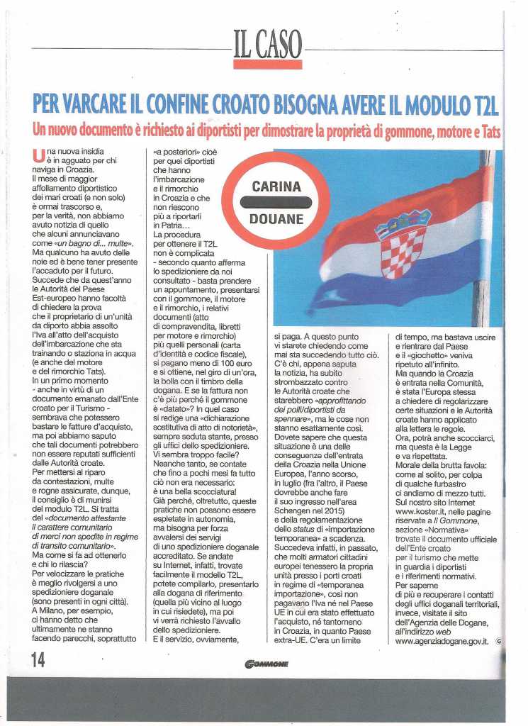 Avec l'autorisation de Monsieur le Directeur Responsable de la Publication , voici l'article paru page 14 de l'excellente revue Il Gommone, n° 332. Septembre 2014.
