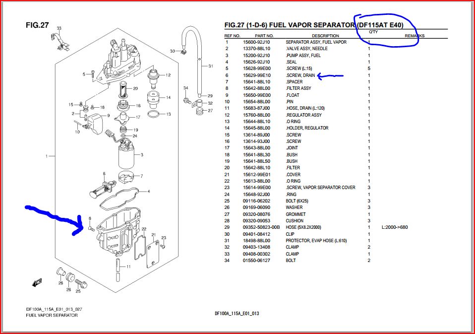 Je déterre ce post, car je vais faire l'entretien de mon DF115 2004 pour la première fois moi même et je me pose une bête question. (en fait 3 questions en une  )