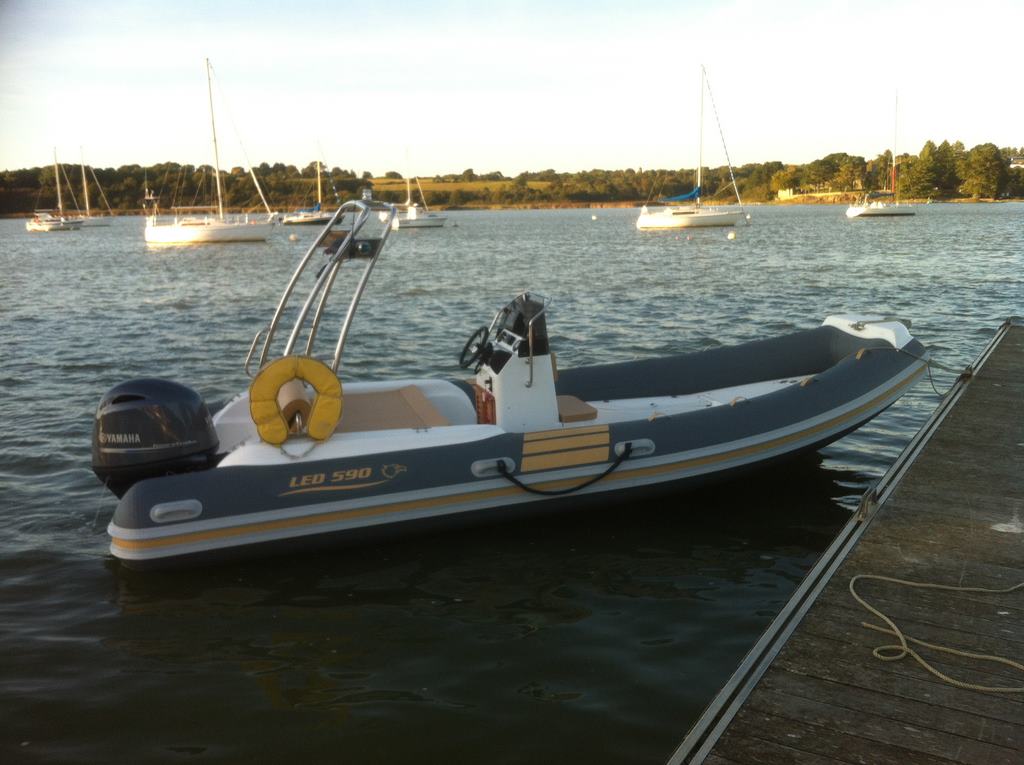 Le bateau à une carène avec un V avant très prononcé formant même un décroché sur le fond de coque., le V arrière est plus évasé (voir photos) le bateau m'a été livré avec le moteur monté avec deux trous au dessus du tableau et une hélice YAMAHA de 13,5 x 16, lors du premier essai rapide, car rodage à faire je trouvais que le bateau poussais de l'eau et avait un rendement très moyen, impossible de trimer trop haut en positif car l’hélice sort de l'eau. Ensuite je l'ai baissé d'un trou et fait un essai en rivière, verdict 36,4 nds à 6 400 trmn, ensuite rebaissé d'un trou encore soit au raz du tableau et 35,7 nds toujours à 6 400 trmn, le TRIM me permet de le soulager un peu plus du nez mais bof