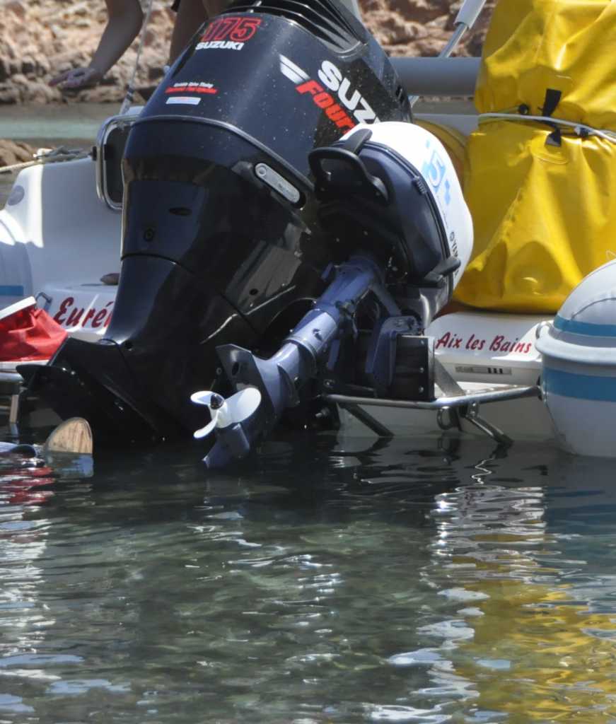 Possédant des boudins qui s'arrêtent au niveau du tableau arrière il s'ensuivrait, de part le poids supplémentaire de çe moteur et du porte à faux, un déséquilibre mettant inéluctablement le bateau " sur le cul"