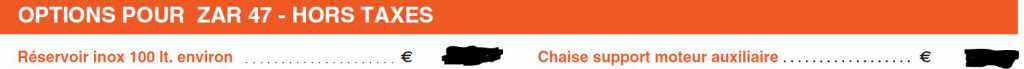 Pour çe qui est des options il me semble aussi qu'il s'agisse d'un catalogue ancien car actuellement tous les Zar sont vendus avec les plateformes arrières et ( catalogue du prochain Nautic de Paris) les options suivantes :