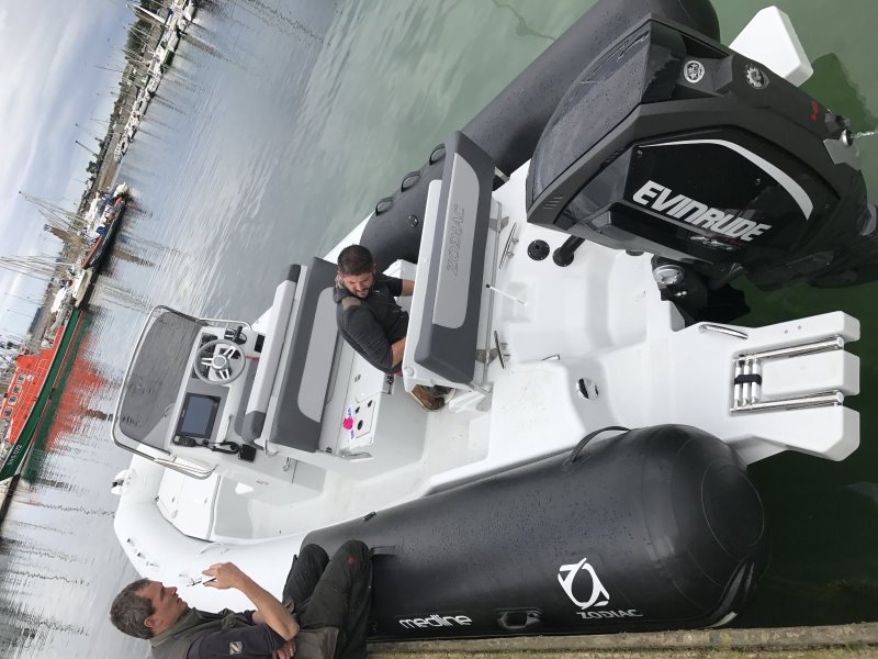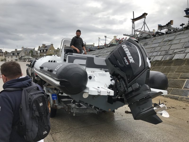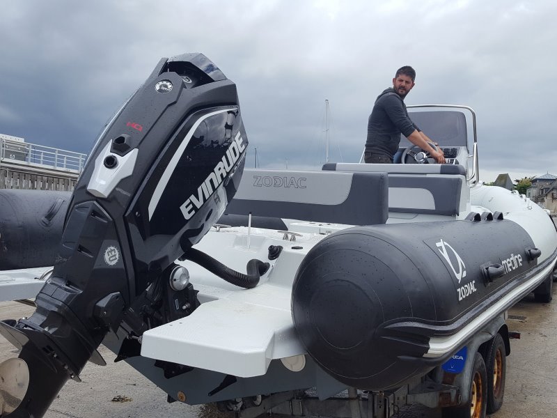 Ca y est, Axellou IV, un Zodiac Medline 740 équipé d'un Evinrude G2 250 HO vient de toucher l'eau et fait ses premiers runs à Saint Malo, même il n'est pas totalement terminé.
