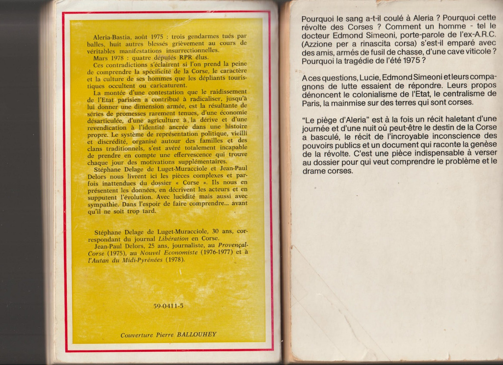 En lisant ces lignes ont comprend mieux pourquoi une trentaine de patriotes Corses emmenés par Edmond Simeoni ont tenu tete à plus de 1200 gendarmes et CRS appuyés par des blindés et 6 helicopteres envoyés sur place par Michel Poniatowski, ministre de l’interieur qui, menacé de mort , n’a jamais mis le pied sur la terre de Corse ...
