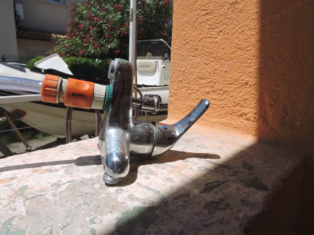 À mes débuts à Bonifacio, j'ai connu un déboire car, ayant fermé la lance robinet, elle a foutu le camp à la verticale..... on suppose qu'elle est en orbite autour de la lune ou autre astre car on ne l'a jamais revue: il faut dire qu'à BFO l'eau est distribuée à une pression de 16 (seize) bars, la norme pour nos maisons étant de 3 à 4 bars maxi. J'ai donc acheté un réducteur de pression que je réglais à trois.