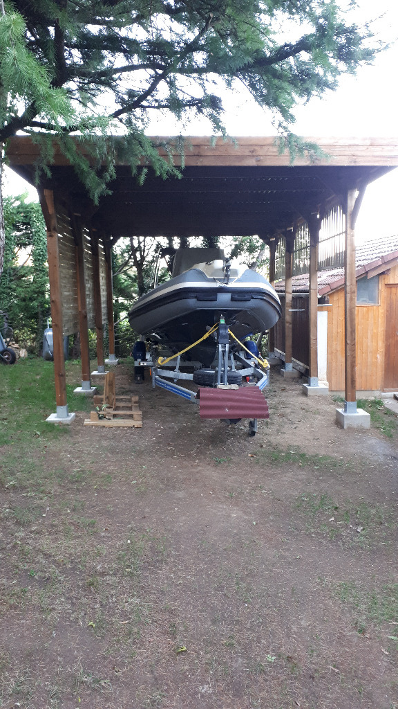 Donc j'ai acheté et construit il y a 2 ans un carport pour camping car 8x4 x 3.4 ht que j'ai réduit à ~ 3m hors tout soit 2.85 dessous.