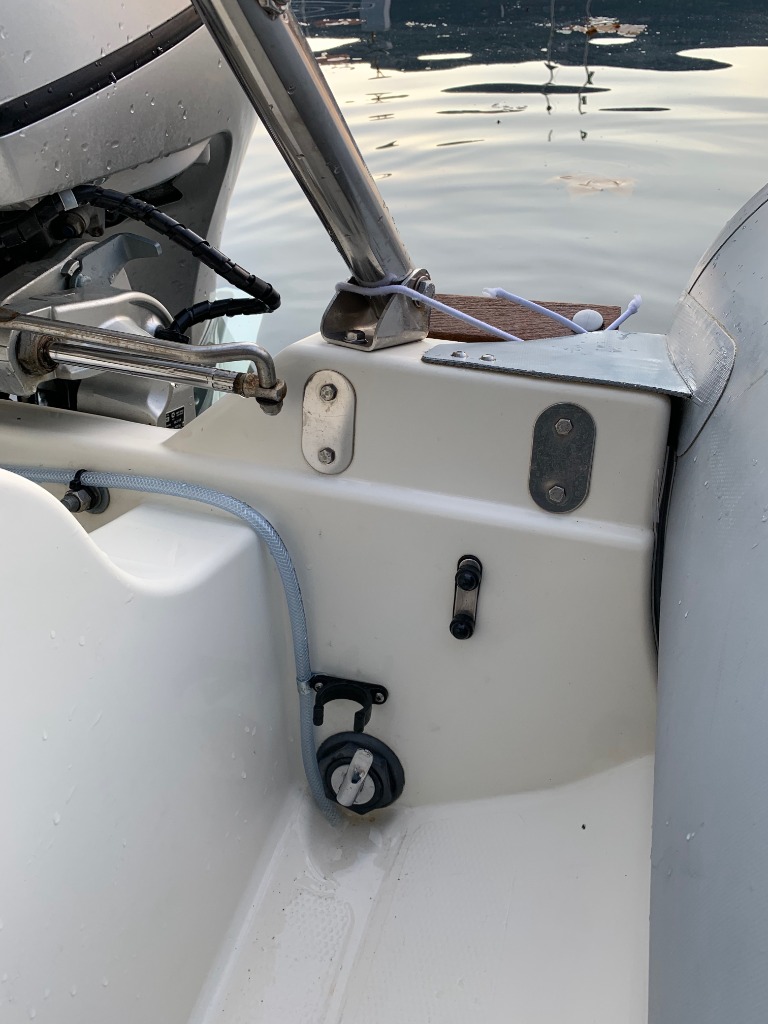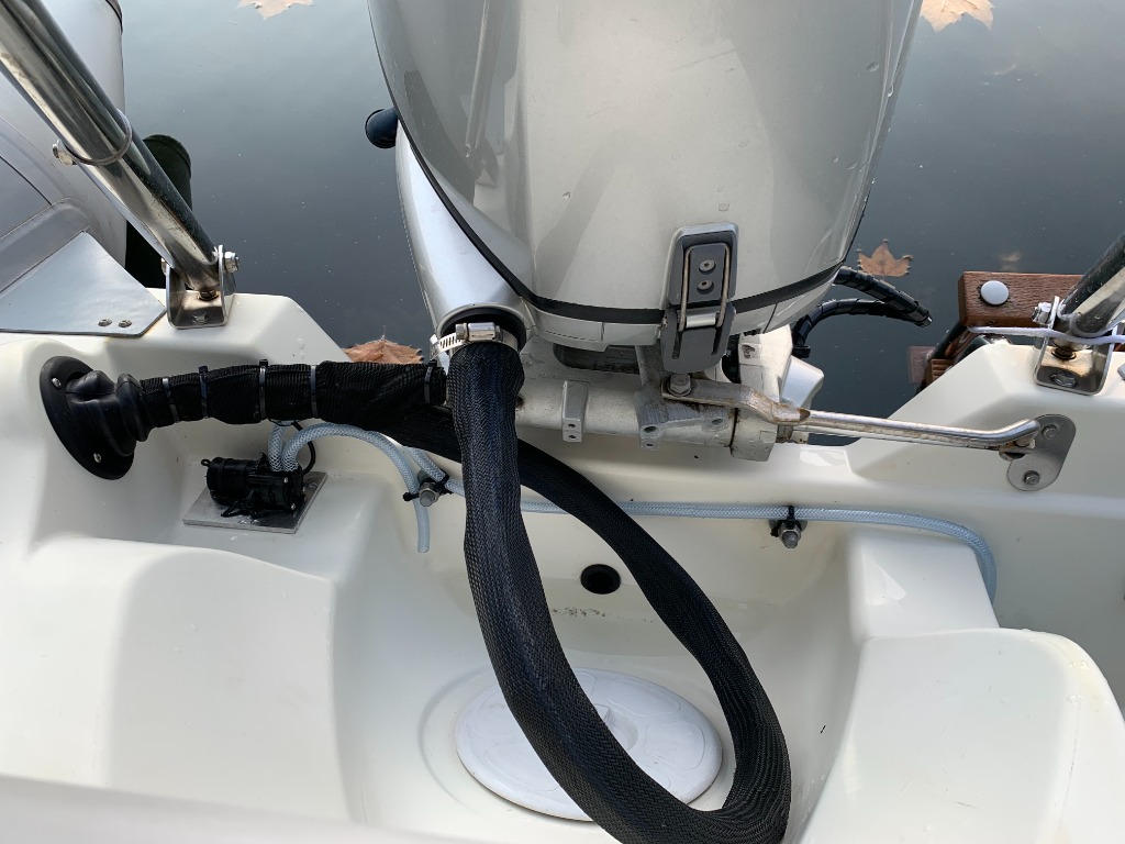 Je l'ai raccordé à une pompe de cale à membrane, installé à l'intérieur du coffre arrière, avec une vanne d'arrêt et un filtre, puis raccordé sur la deuxieme pompe de cale automatique, qui est au fond du coffre via un raccord Y et des clapets anti retour.
